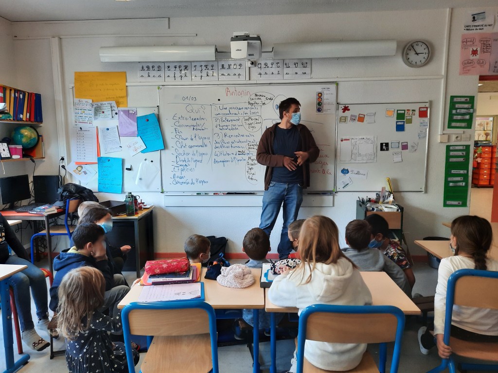 Je suis intervenu toute la semaine dernière à l’école primaire du Mas de la Raz, à Villefontaine, et c’était chouette !